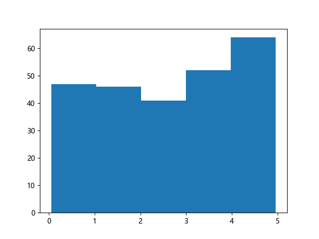 # 使我们的编译器能够绘制的三行代码: import sys import matplotlib matplotlib.use('Agg') import numpy import matplotlib.pyplot as plt x = numpy.random.uniform(0.0, 5.0, 250) plt.hist(x, 5) plt.show() # 使我们的编译器能够绘制的两行代码: plt.savefig(sys.stdout.buffer) sys.stdout.flush()