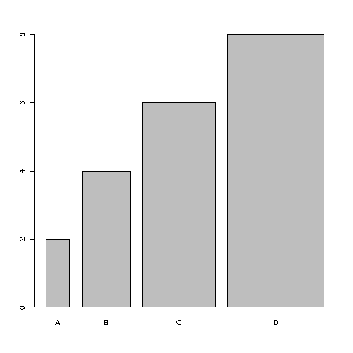 barplot(y, names.arg = x, width = c(1,2,3,4))